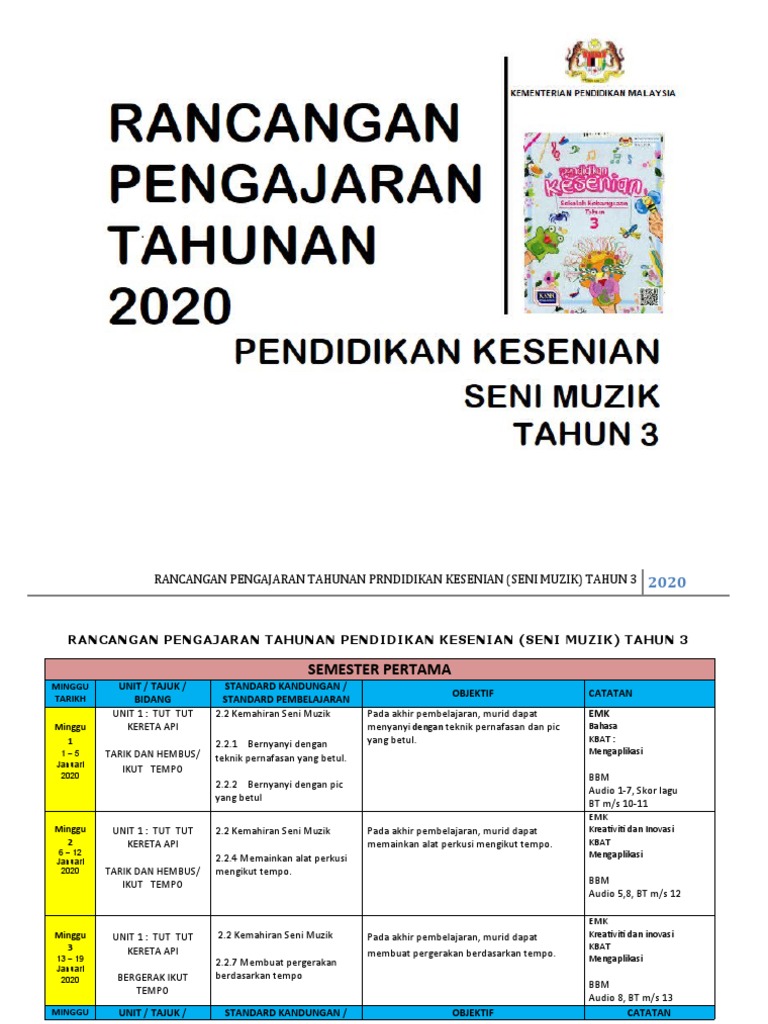 Interested in flipbooks about Pendidikan Muzik Tahun 3. Bagi guru sekolah menengah juga antara bahan yang amat diperlukan di awal tahun adalah rancangan pengajaran tahunan ataupun rpt. RPT Muzik Tahun 3 2022 2023 KSSR Semakan ini disusun menggunakan sukatan pelajaran terkini Kurikulum Standard Sekolah Rendah KSSR Semakan 2017.